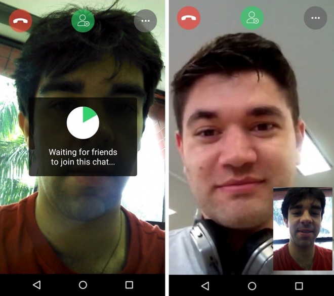 Aqui você pode escolher um amigo em específico para realizar uma chamada em vídeo direta ou poderá convocar um grupo com até 12 pessoas. Cada contato receberá um link que direciona à janela de conversa. Se eles não tiverem o app instalado, o endereço final é o da página de download do app na Play Store.